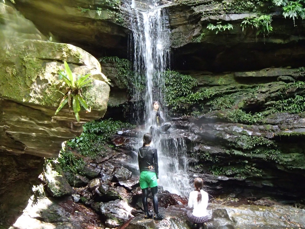 ■ うっそうとしたマングローブ林の川でカヌー体験、約30分程のんびりと漕ぎ進み、清流流れる沢をのんびりと歩きクーラの滝へ。